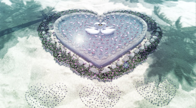 ❤Heart Pond with swans, flowers, petals, heart rocks, water (with motion - script no mod)Land impact: 11 - Approximate sizes: meters 3.5 wide x 2.7 deep. - Extra for decors: ~Heart petals: Land Impact 1